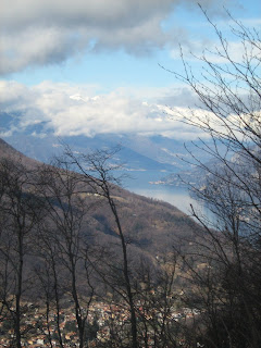 The whole effort became worth it, though, because just at that moment, the mist and clouds began to lift and suddenly gorgeous views of the Lago di Lecco and the Triangolo Lariano began to appear through the trees. In the distance, I could even see the snow-capped mountains.